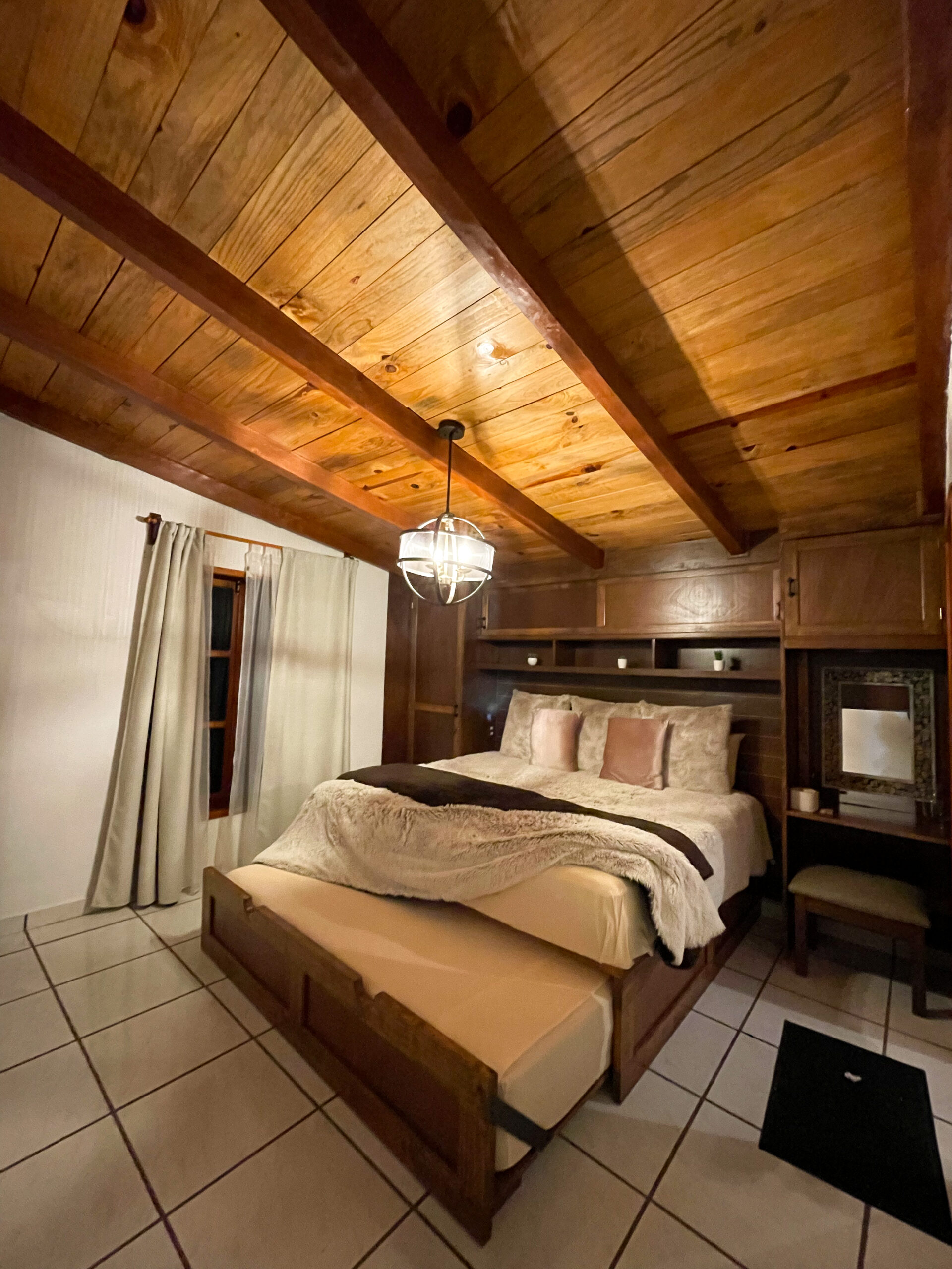 - Cama king size y cama matrimonial.